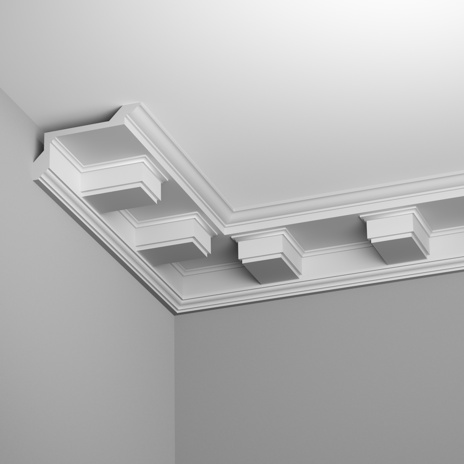 Élégance impériale figée en staff : découvrez tout le raffinement et la sobriété pour cette corniche de plafond à poser dans une pièce de vie que dans une chambre.