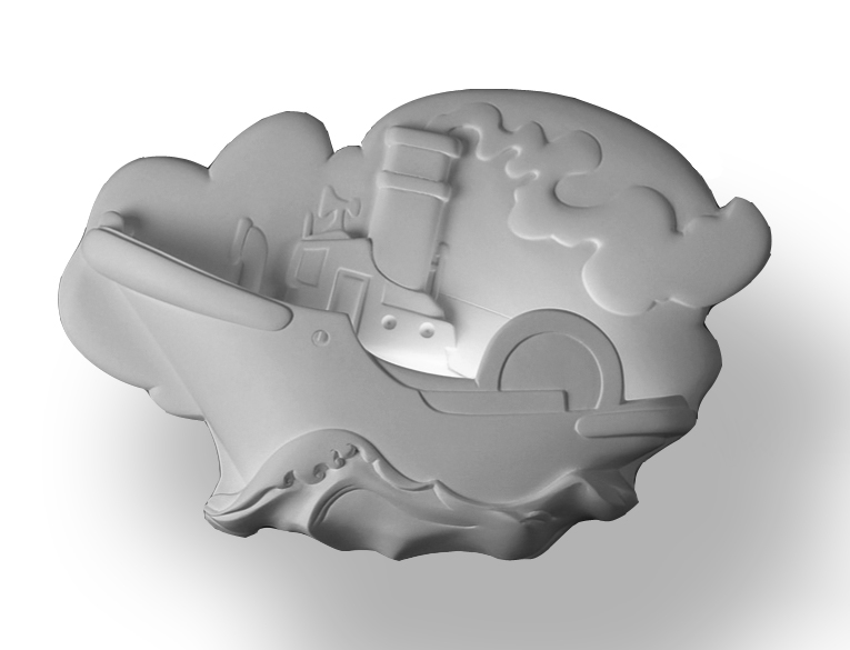 La proue d'un navire fièrement avancé, sa cheminée vigoureusement dressée, fumée de l'embarcation se distillant dans un ciel peuplé de nuages... véritable ode à l'évasion infantile, l'applique murale 91 designée par Patrick Le Tuault comblera les plus petits et les plus grands.