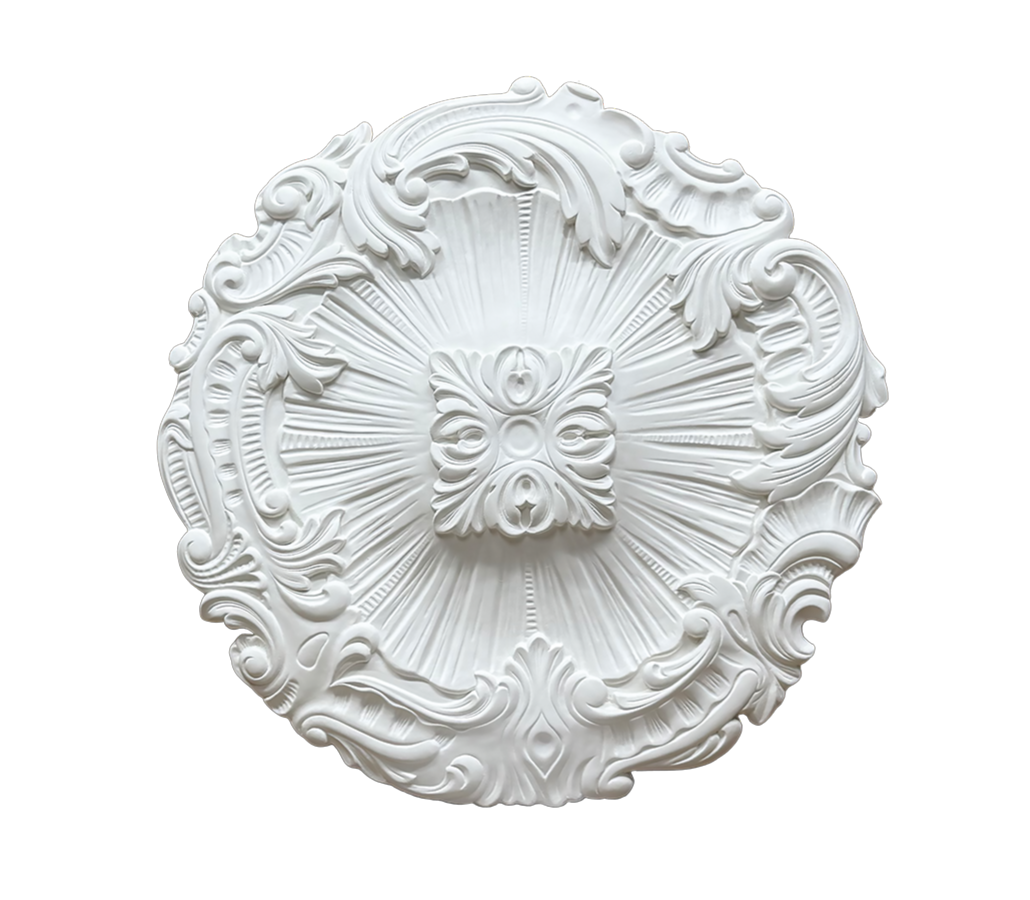 À partir de formes géométriques pures, la rosace M205, rosace plafond, allie la finesse des détails et son style d'exception. Elle apporte une perspective sur l'association du baroque et du classicisme en retrouvant le langage de la noblesse.