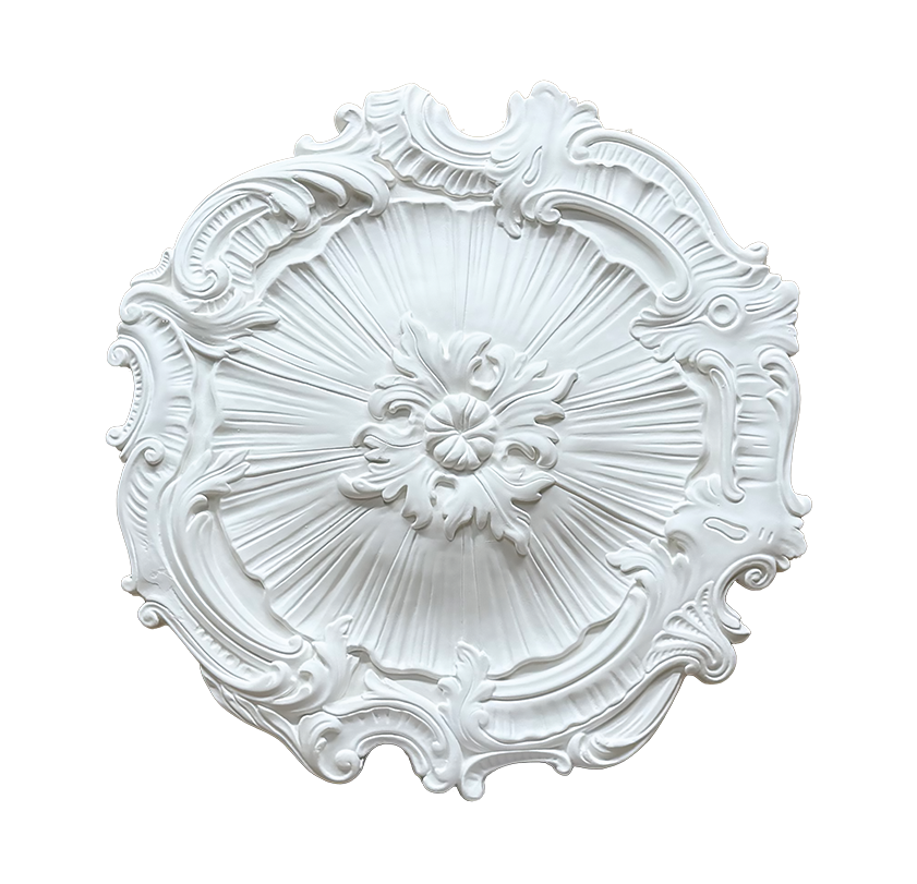 À partir de formes géométriques pures, la rosace M205, rosace plafond, allie la finesse des détails et son style d'exception. Elle apporte une perspective sur l'association du baroque et du classicisme en retrouvant le langage de la noblesse.